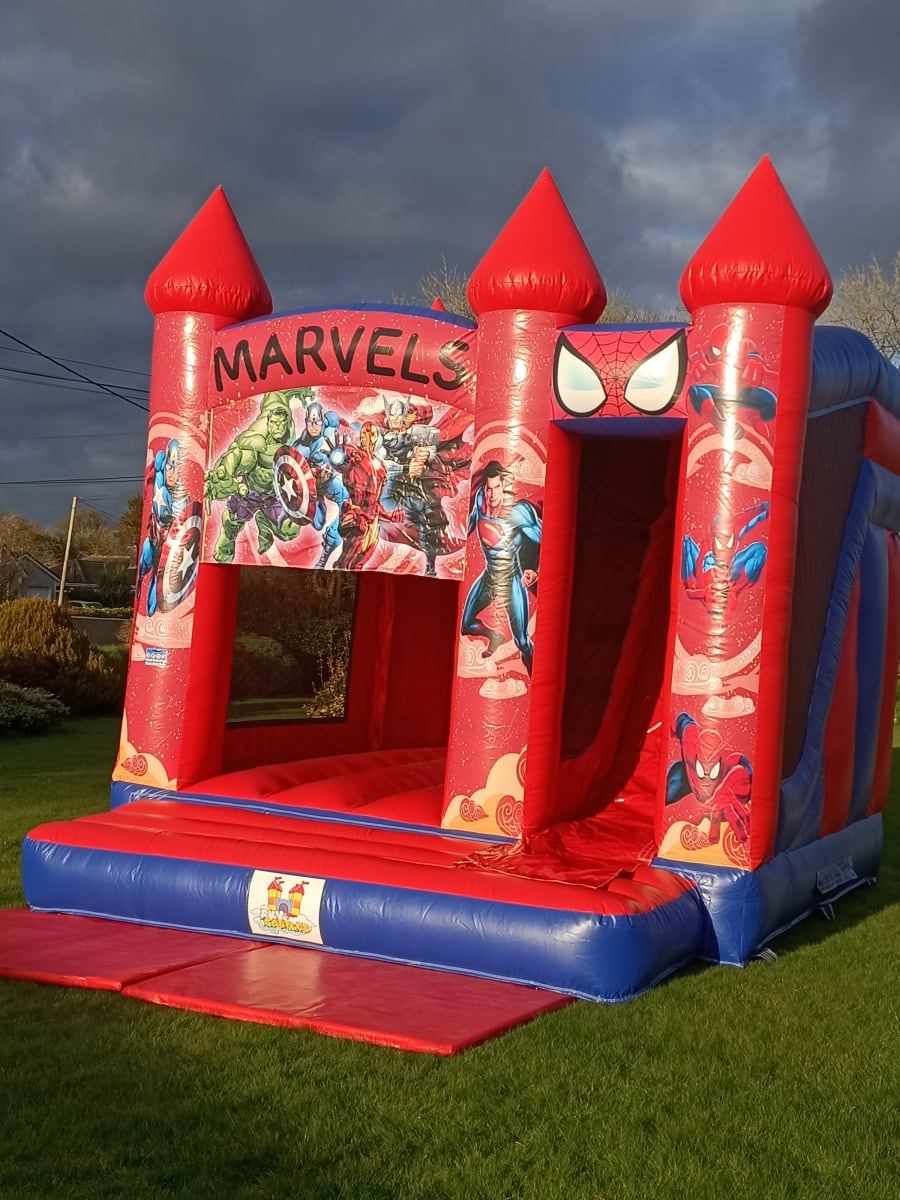 Bring your superhero fantasies to life with our Marvel Superheroes Bounce & Slide Bouncy Castle! Our team is ready to help you every step of the way, from choosing the perfect inflatable to delivering it right to your event in Co Cork and surrounding areas. Don't wait, call or get in touch today to make your reservation and join the ranks of the world's greatest heroes!