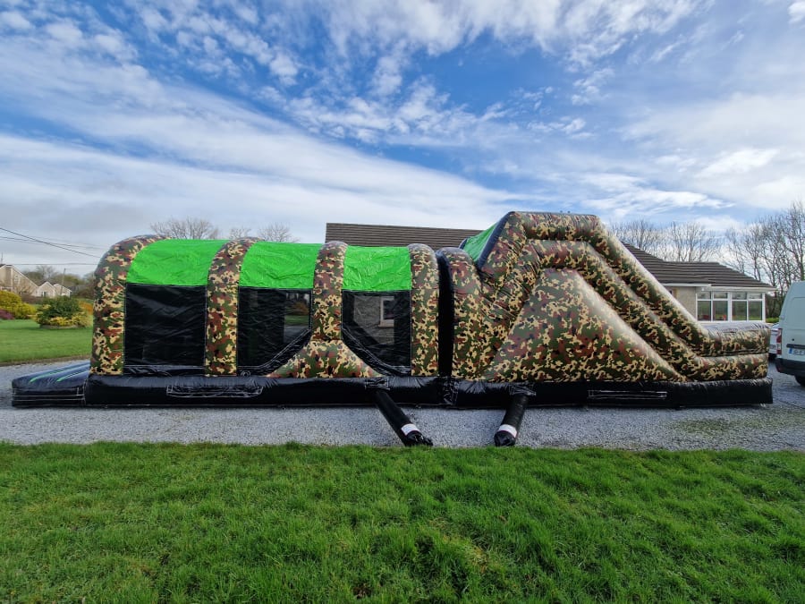 Prepare yourselves! Sky Castles Cork brings to you an exhilarating obstacle course, ready to impress at events in Ballinhassig, Kinsale, Carrigaline, and throughout County Cork. Introducing our phenomenal Army Combat Bouncy Castle Obstacle Course