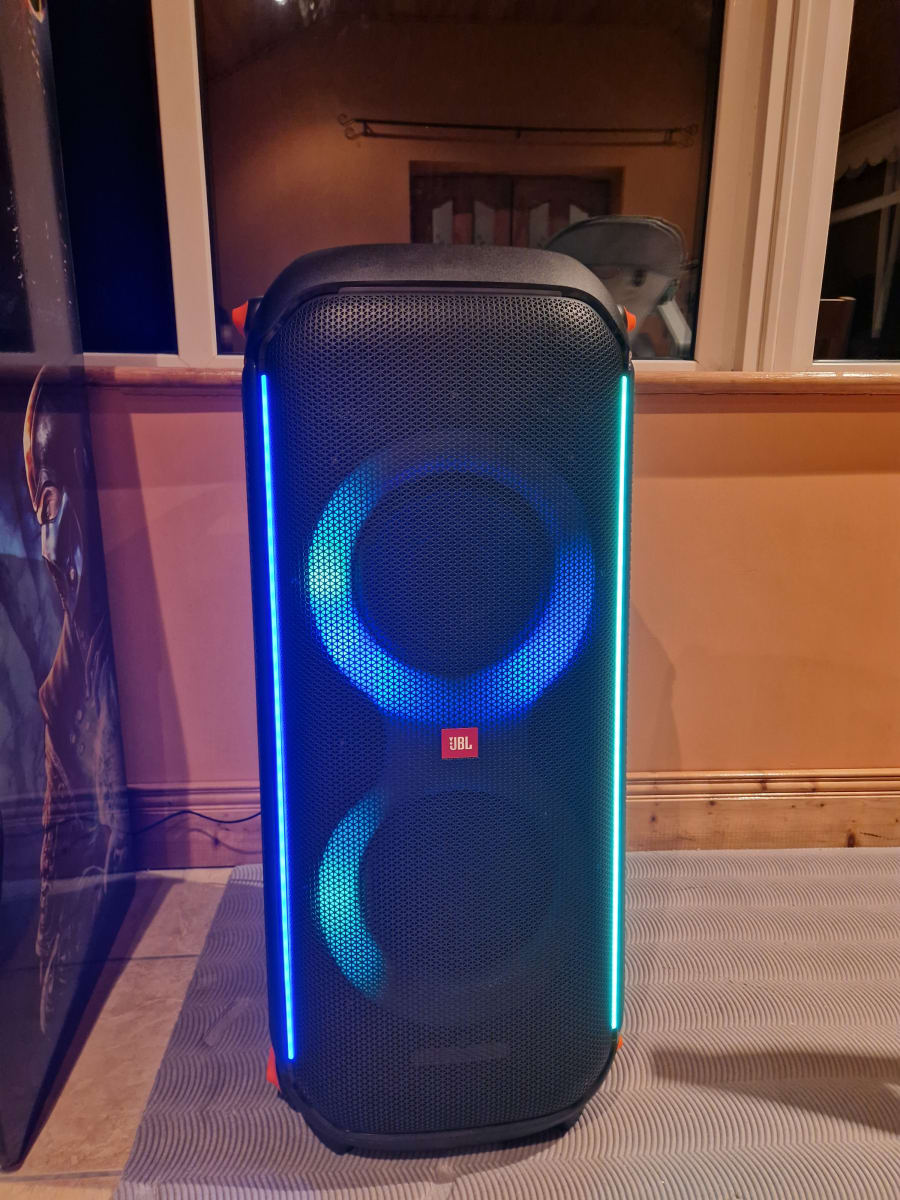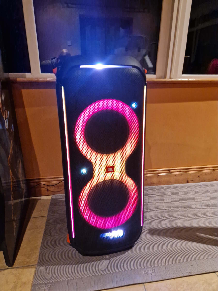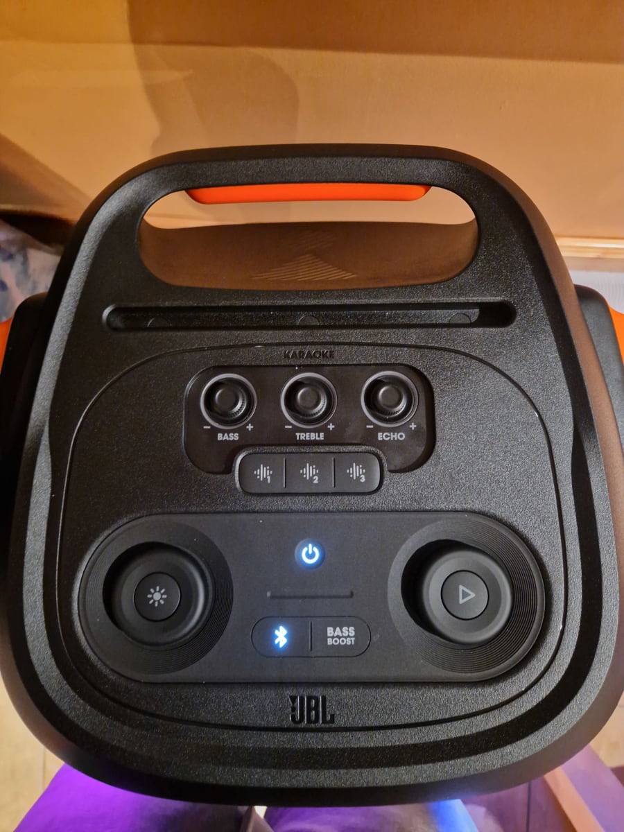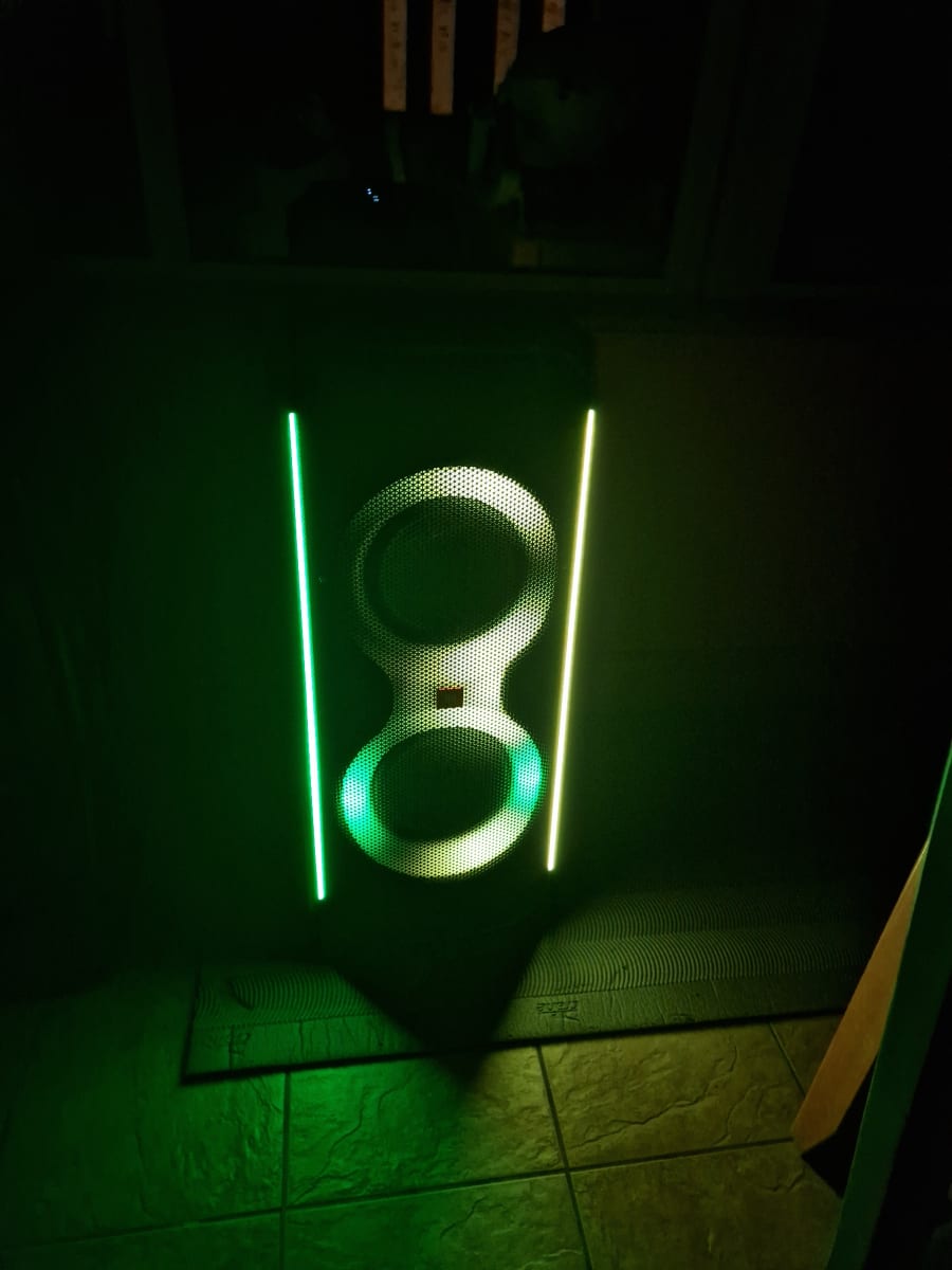 Equipped with dual 2.75-inch tweeters and 8-inch woofers, the JBL Partybox 710 ensures every beat is crisp and every bass drop resonates deep within. The built-in light display adds an extra layer of excitement, synchronizing with the music to create a dynamic, club-like atmosphere wherever you are. Whether it's a pulsating strobe or a subtle fade, the lights will set the perfect mood for your party.