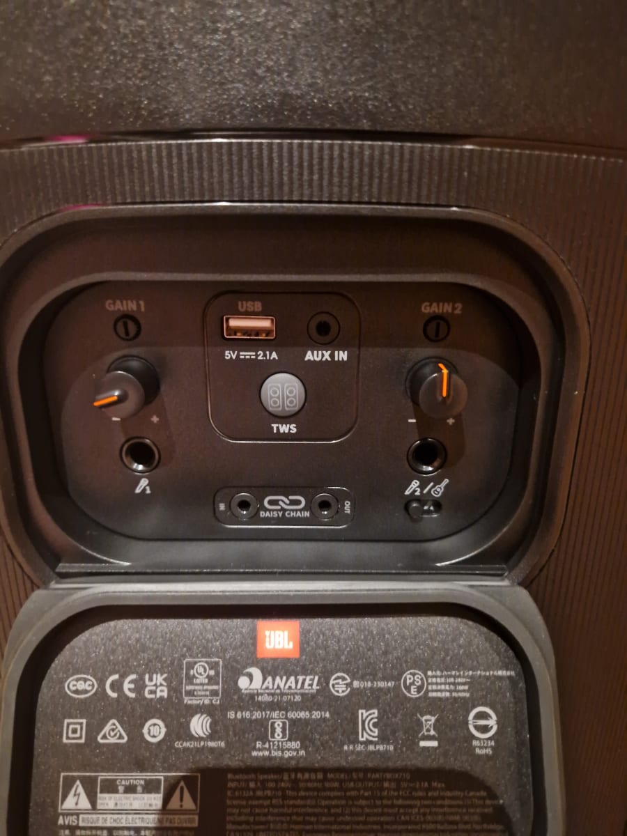 Enjoy seamless music streaming with multiple input modes, including wireless Bluetooth, USB, and an auxiliary cord. The Partybox 710 also features microphone and guitar inputs, perfect for those spontaneous karaoke sessions or live performances. Let your inner rockstar shine or simply sit back and relish high-quality tunes from your favorite playlists.