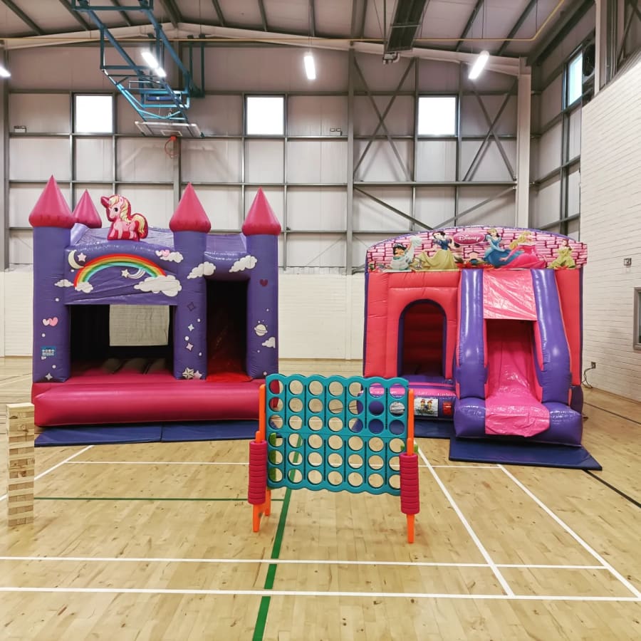 We can provide bouncy castles and obstacle courses of all shapes and size indoors. One thing to consider when booking a bouncy castle for indoors is the height of the ceiling or the roof of the hall. Most halls will have very high roofs so there is no problem, but please do make sure to double check with the height of our bouncy castles which is listed by clicking the size tab on each product.